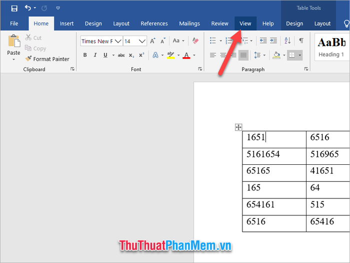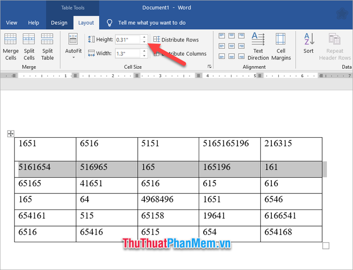 Next, click to open the Layout ribbon of Table Tools (appears only when a specific table is selected).