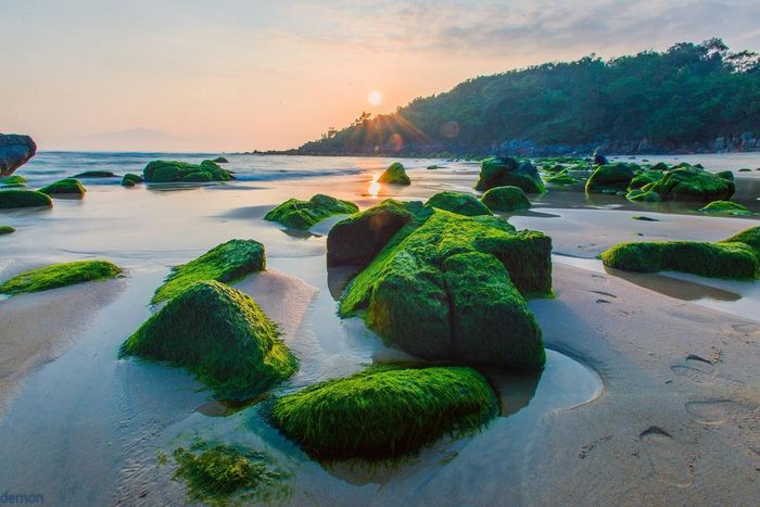 Travelers can visit Nam O Reef at any time of the year. Especially noteworthy is the period before, during, and after the Lunar New Year, considered the 'golden season' for moss as the pale sunlight and gentle weather enhance the beauty of the landscape.