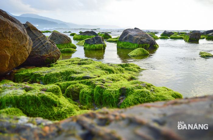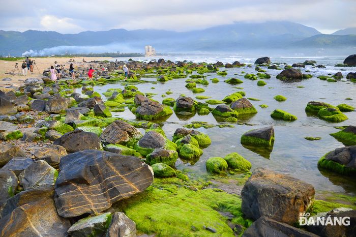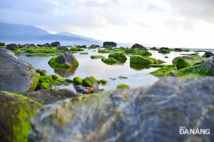 Around the beginning of spring, Nam O Reef adorns itself with the vibrant green beauty of moss. The rocky crags covered in moss blend harmoniously with the crystal-clear seawater, leaving tourists in awe. Standing on the reef, facing east, you'll see Son Tra Peninsula, while to the west, the Hai Van Pass emerges amidst the clouds.