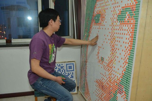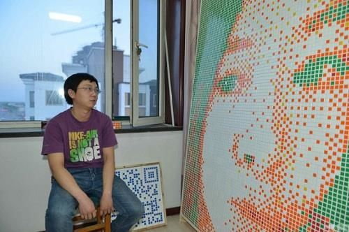 Tong Aonan was deeply infatuated with his crush and always thought of the most impressive way to express his feelings. After much contemplation, he decided to create a gift by using colorful Rubik's cubes to piece together a dreamy portrait of his crush. Specifically, as the 27-year-old shared, it took him two months to sketch the portrait, measuring 2.1 meters in height and 1.4 meters in width, using Photoshop. Tong also had to spend nearly $500 (around 10 million VND) to buy 840 Rubik's cubes.