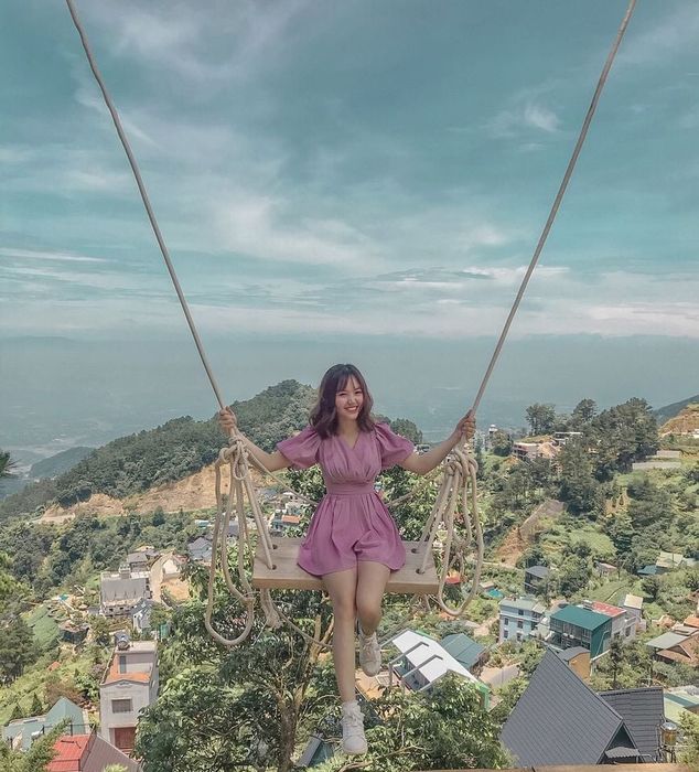 Moreover, visitors are treated to picturesque backgrounds featuring a rustic Dalat-style bar counter, Bali-style swings and bird's nest swings, and wooden tables with forest views. There's nothing like immersing oneself in the poetic natural scenery at this upscale café, especially as the sun sets, while chilling out at the beautiful Cỏ Lạ café!