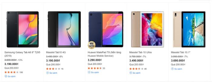 You can easily purchase a tablet for 4-5 million VND at Mytour.While configurations in the 4-5 million VND range may not be overly powerful, for basic needs such as online learning, light entertainment for children,... the advantages of a large screen and long-lasting battery life of these products are already sufficient.