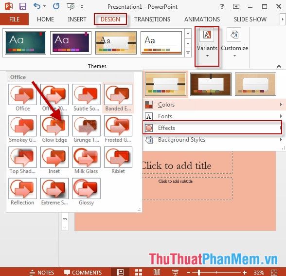 Step 3: If you want to add additional effects to the background color, click Effects -> choose suitable effects:
