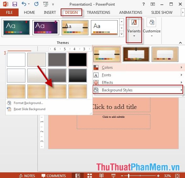 Step 4: To make the slide stand out more, click Background Style to select additional pre-built background color templates: