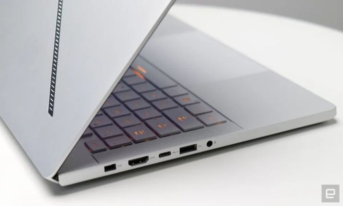 ASUS's new laptops are designed with a boxy shape, featuring clean, sleek lines (Photo: Engadget)Additionally, the keycaps and speakers have been enlarged by 12% and 20% respectively. Instead of multicolored RGB lighting, the laptops feature a single strip of white LED light diagonally across the lid. This creates a bold yet understated aesthetic. The machines come in two color options: Eclipse Gray or Platinum White.