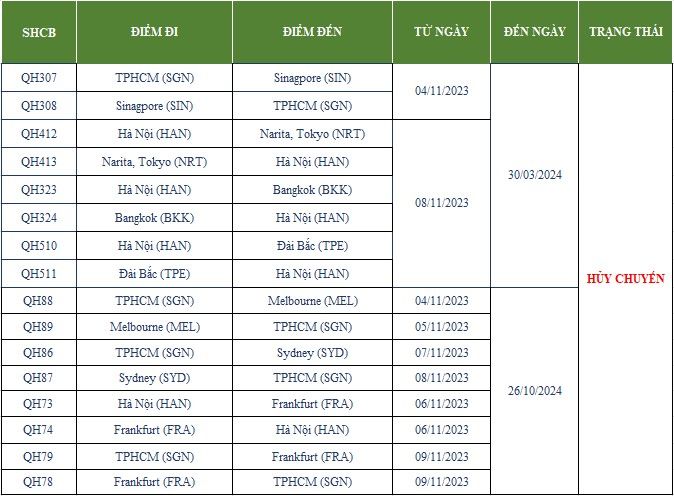 As part of its network restructuring process, Bamboo Airways announces plans to temporarily suspend international flight routes to/from Vietnam starting from November 4, 2023.