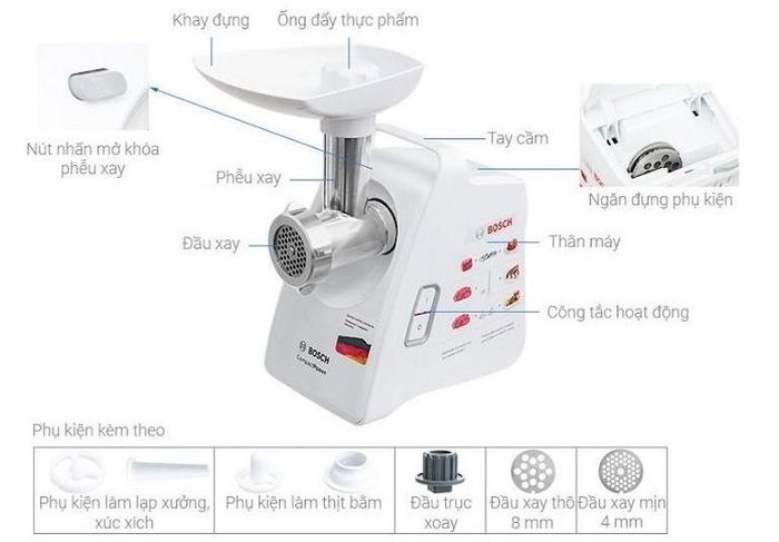 Currently in the market, the Bosch mfw3520w Meat Grinder is priced between approximately 4,500,000 VND – 4,990,000 VND.