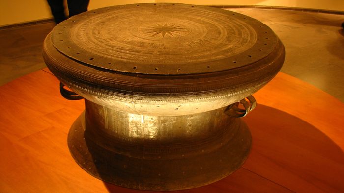 Rice drum is a distinctive cultural symbol of Vietnam, representing the Dong Son culture from 700 BCE to 100 CE. It captures attention with its large size, balanced shape, and intricate engraved patterns.