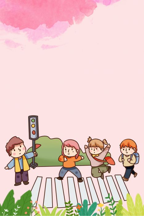 Scenes of Traffic Safety with Pink Skies and Children Crossing