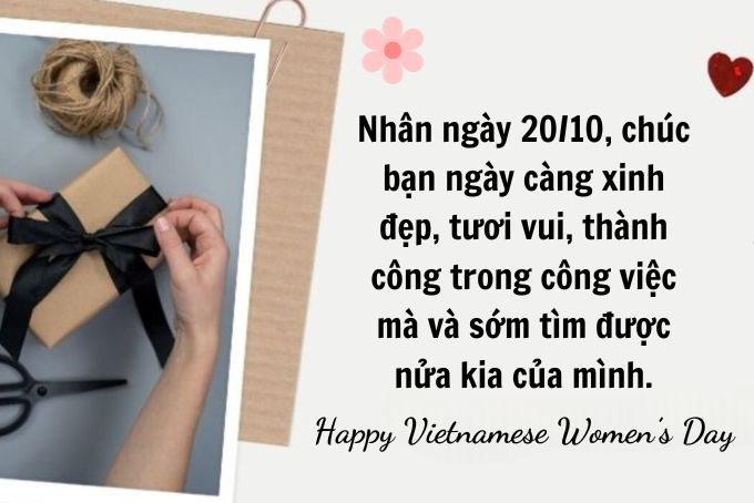 On this day, apart from the 20/10 greetings for your friends on Vietnamese Women's Day, you should also give them small, cute gifts to strengthen your friendship. Your friends will surely be delighted with your preparation and affection conveyed through these gifts.