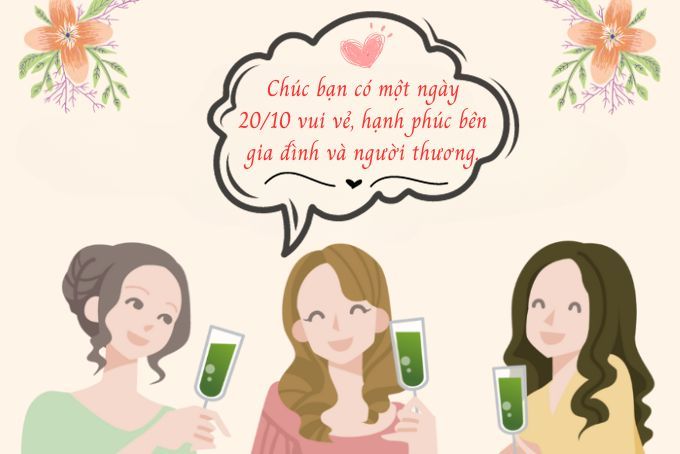 3. 20/10 Wishing our sisters: Hands full of flowers, baskets full of gifts, no worries about household chores, get to travel far, eat and drink heartily, money without repayment.