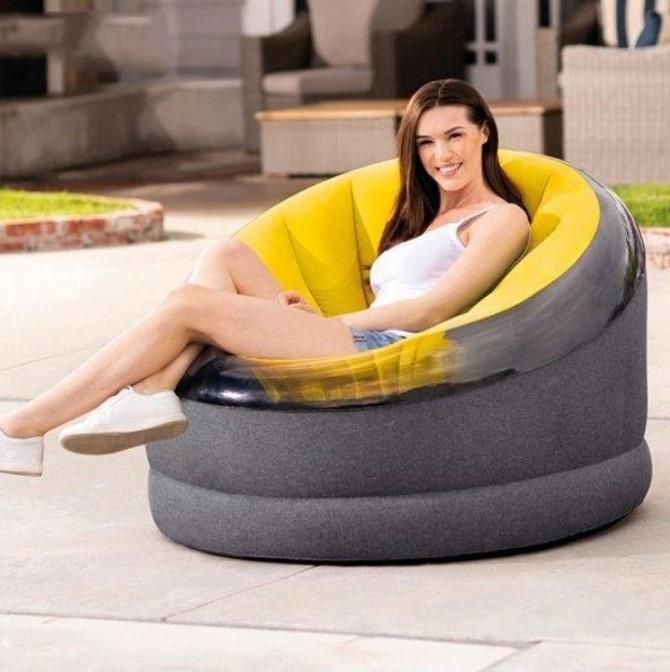 - The inflatable chair is perfect for watching TV, reading books, or even taking a nap whenever you feel tired. The product inflates and deflates in minutes. Therefore, it is easy to clean and compact for storage or transportation.