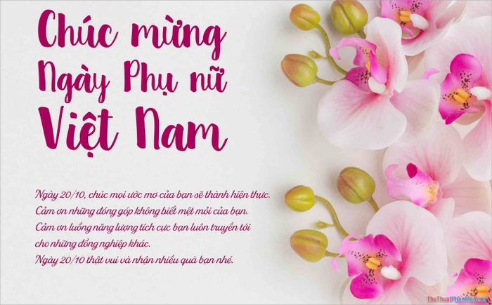 - Working alongside you, we know the job will be done perfectly, for you embody perfectionism. Congratulations on Vietnamese Women's Day, October 20th.