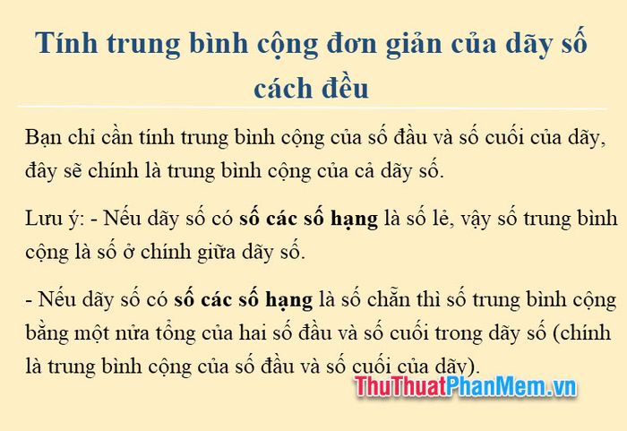 - If the sequence has an even number of terms, the arithmetic mean is equal to half the sum of the first two and the last two numbers in the sequence (which is the arithmetic mean of the first and last numbers in the sequence).