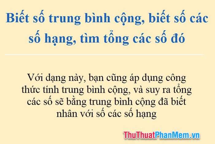 For this type, you also apply the formula for calculating the arithmetic mean and deduce that the sum of the numbers is equal to the known arithmetic mean multiplied by the number of terms.