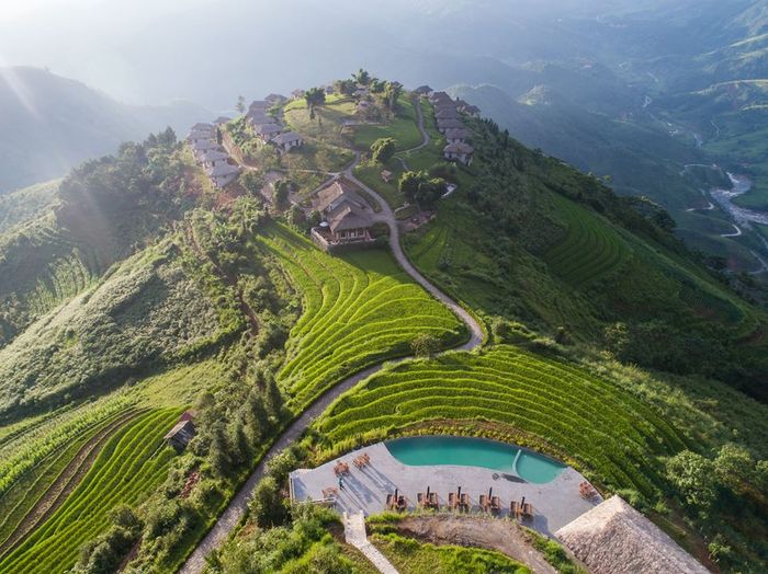 Located approximately 1 hour from the town of Sapa by car, Topas Ecolodge emerges in a picturesque natural setting, with ethereal mountain clouds enchanting all who behold. On a lush green hill, Topas Ecolodge comprises 25 bungalows built with white granite, charming palm leaf roofs, harmonizing perfectly with the beautiful surrounding landscape.