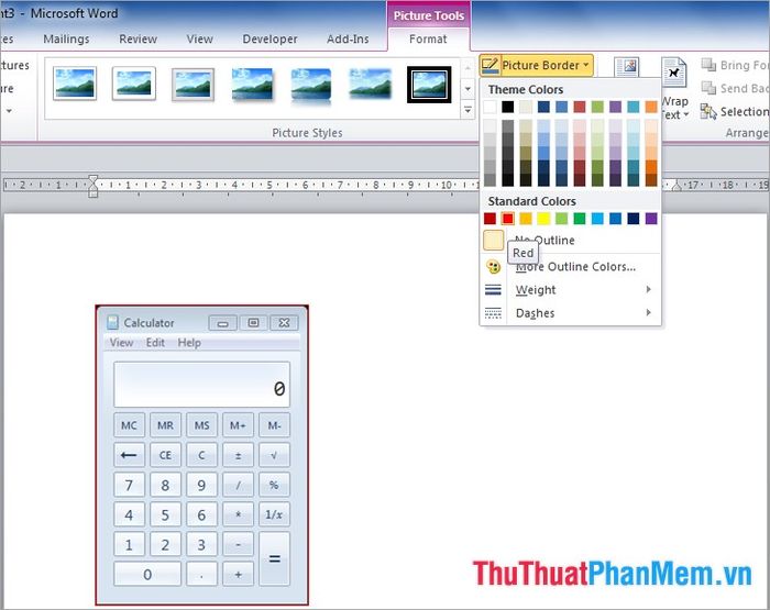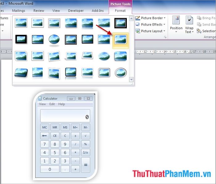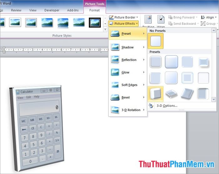 - Generating 3D effects: In the Format menu, select Picture Effects and choose the effects you desire.