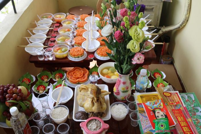 The offerings for the Twelve Midwives must be present on the day of the baby boy's full month celebration (Source: Internet)Offerings for the Altar of the Twelve Midwives: Cúng Đức Ông
