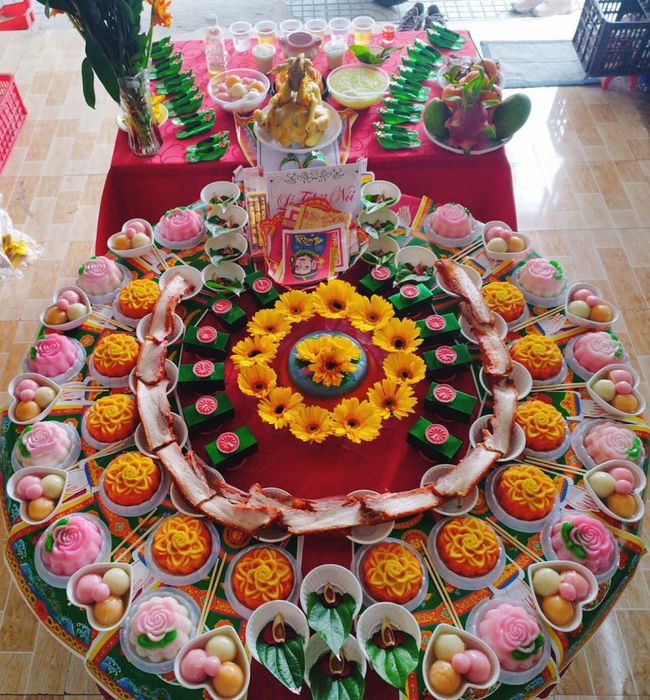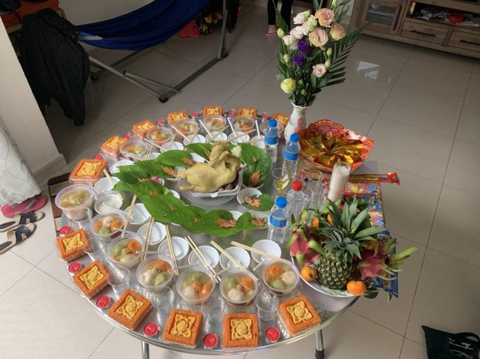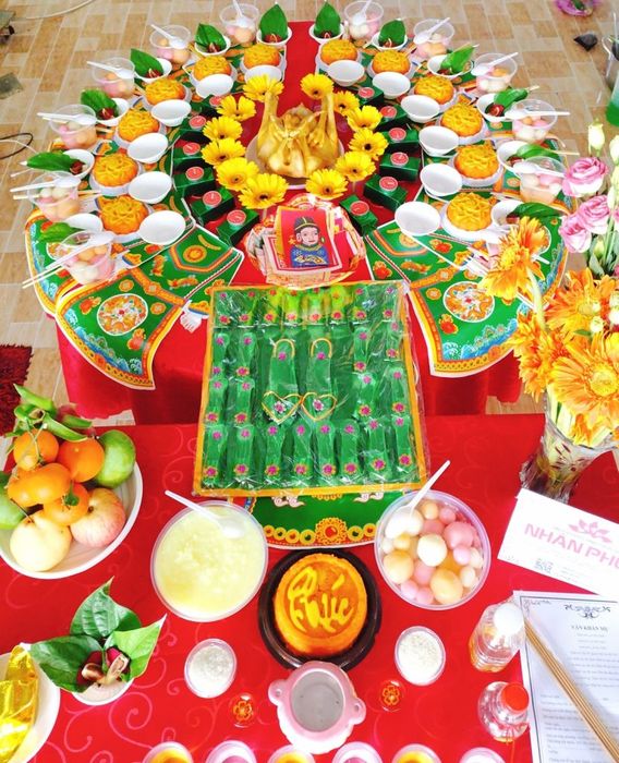 - A smaller and lower tray for arranging offerings to honor Đức ông. The mother will ask Đức ông to bear witness to the birth of the son and request blessings from the Jade Emperor for the son.