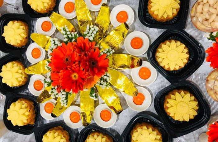 - Sweet Soup and Sticky Rice: 12 small bowls of sweet soup and 3 large bowls of sweet soup along with 13 small plates of sticky rice and 3 large plates of sticky rice. You can choose between pumpkin sticky rice or plain sticky rice depending on the region and family preferences.