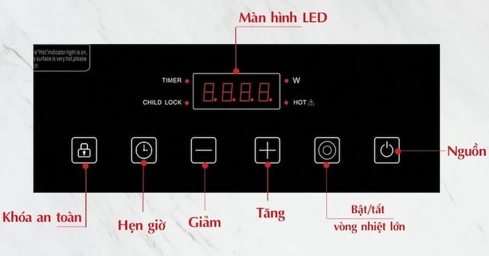 The child lock feature is essential for families with young children. By pressing the lock button for 3 seconds, this feature will activate, disabling all functional buttons on the cooktop except the power button. It helps protect young children, preventing them from meddling and altering preset cooking programs.