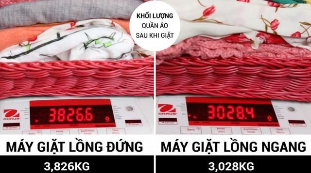 With the same load before washing, a front-loading machine delivered an impressive result of only 3.028kg after washing, while the top-loading machine yielded 3.826kg.
