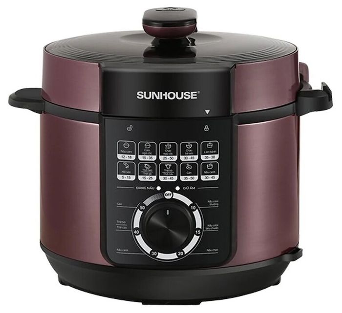 The neutral black and purple color scheme of the Sunhouse SHD1657 adds sophistication and elegance. The detachable lid makes it easy to clean. The multi-layer non-stick coated aluminum inner pot, 1.2mm thick, heats up well and effectively keeps food warm. The Sunhouse SHD1657 operates with 1000W power, ensuring quick and time-saving cooking.