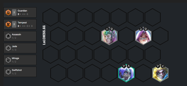 In the early game phase, players are likely to secure sufficient Arcane Guardian champions like Leona, Taric, and Ezreal to handle damage. Obtaining an early 2-star Ezreal is a significant advantage. Additionally, adding Qiyana is necessary to activate the Storm Dragon synergy.