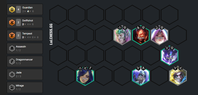 Formation at level 9: Leona - Braum - Taric - Idas - Thresh - Hecarim/Ornn - Ezreal - Xayah.