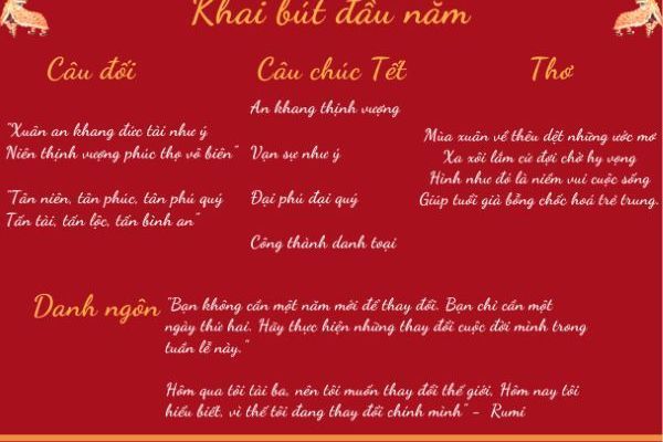 Ancient beliefs emphasize that the lines written at the beginning of the new year should not be copied but rather originated from one's own thoughts. You can jot down your plans for the new year to gain motivation to turn dreams into reality, such as achieving high accomplishments, scoring well in the IELTS exam, getting into your favorite university, learning to play a musical instrument, picking up a new language, and more.