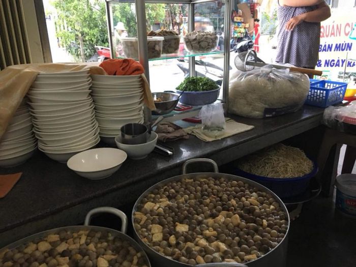 Aunt Tu's vegan restaurant, although not open daily, only operates on the full moon and the first day of the lunar month. Despite being open only 2 days a month, the restaurant has a very large number of customers because Aunt Tu's dishes are very deliciously prepared. In the morning, Aunt Tu sells vegetarian beef noodles, in the afternoon she sells pho, noodles, and vegetarian banh canh, each dish carries the delicious taste of various vegetables and especially straw mushrooms. Toppings include tofu slices, peanuts, and vegetarian sausage served with raw vegetables. Especially, the broth is very sweet as it is cooked from straw mushrooms, tofu, tomatoes, beets, ...