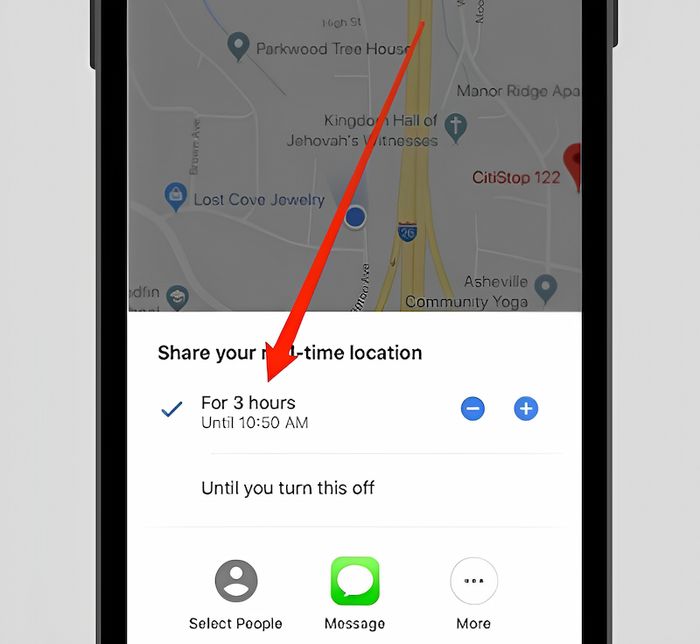 Step 4: Select the sharing duration, meaning you and the other person can see each other's location only during the chosen time period.