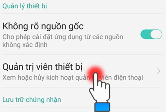 Step 2: Scroll down and find the device management section => Choose Device Administrator