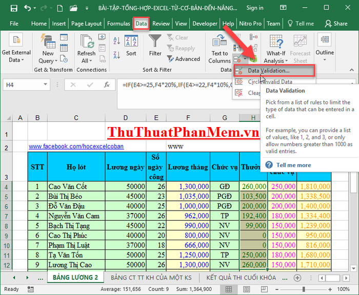 Step 1: Select the data range to limit -> go to the Data tab -> Data Validation: