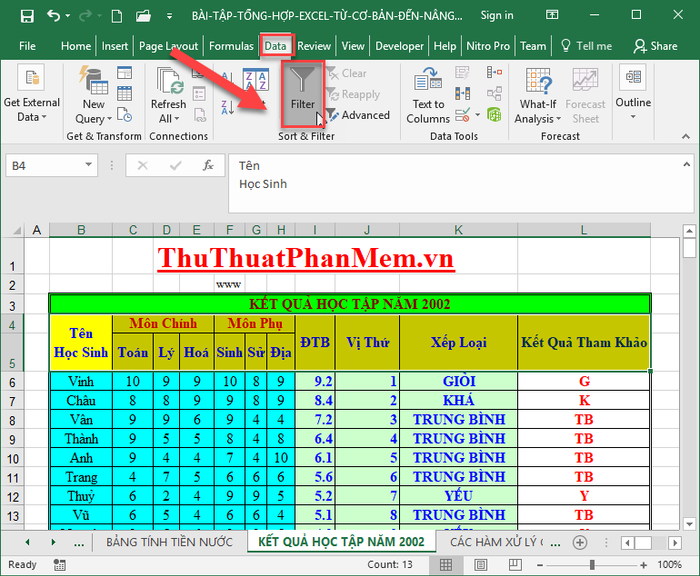 When dealing with a large amount of data and you want to view the results for a specific individual or filter a list of students in a class or a school attending competitions, quickly apply the filtering feature in Excel to save time.