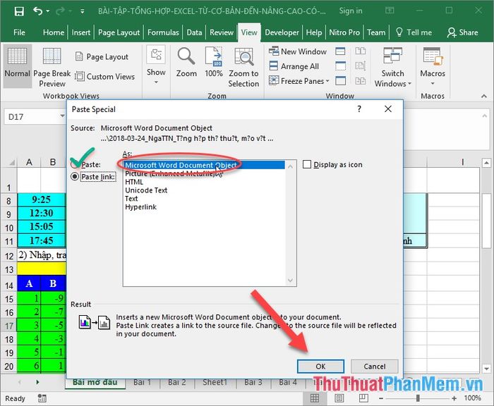 When your data exists in both Word and Excel files, and you want changes in one file to automatically update the other, follow these steps: