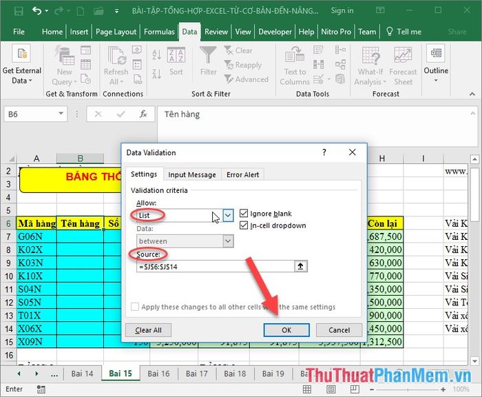 3. Creating a drop-down list in Excel is as simple as performing similar actions in the 6. Managing fixed commodity categories with Validation section.
