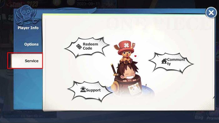 Select the Avatar icon.Step 3: Next, choose the 'Service' section, and you'll find the 'Redeem Code' option. Click on this button, enter the code you want to use, and finally, press 'Claim' to complete the code entry.