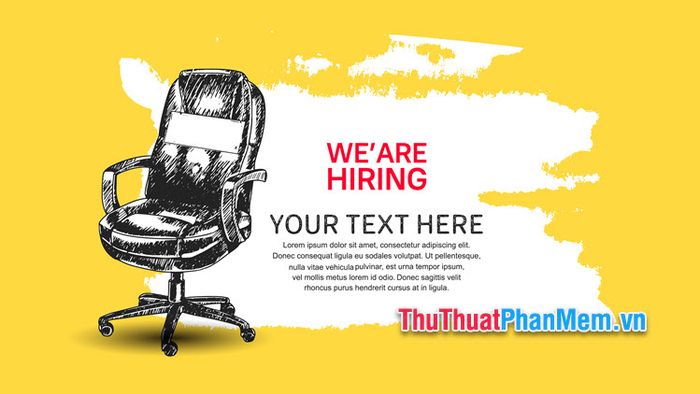 - Simple yellow recruitment banner template, designed with a corresponding chair symbolizing the recruitment position