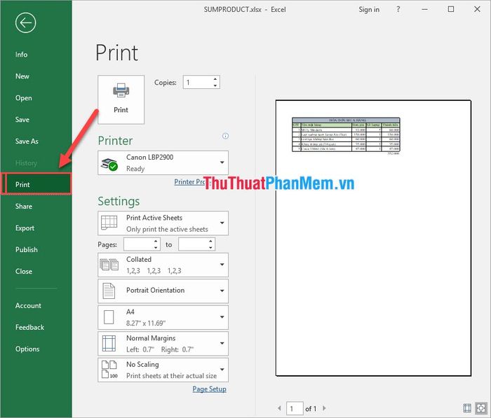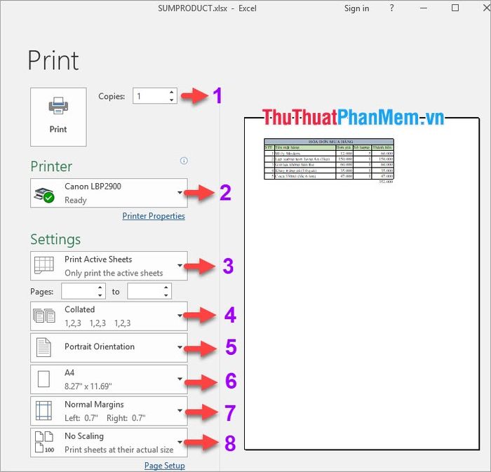 After checking the above information, proceed to print your Excel file as follows: