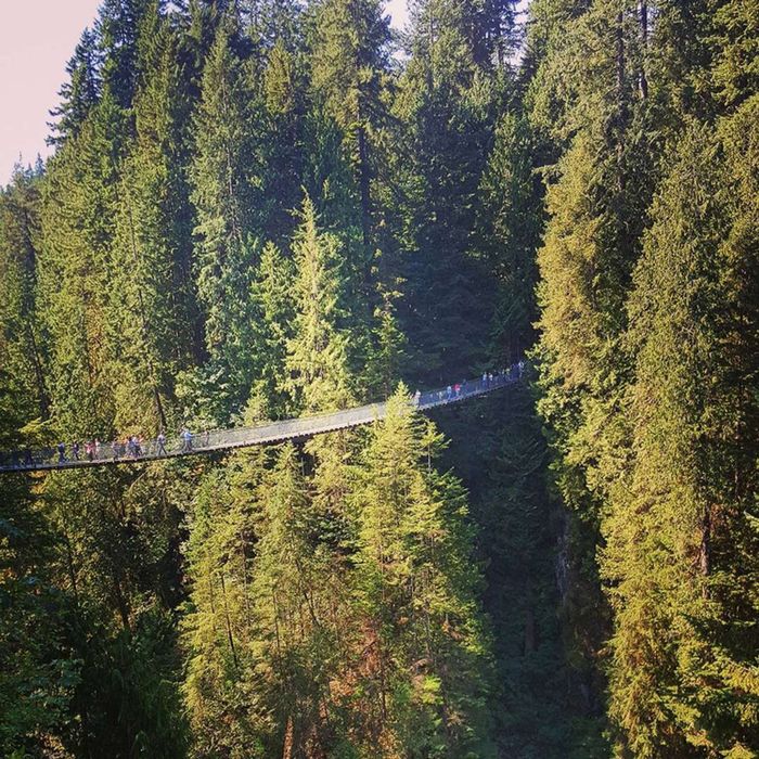 Many tourists find excitement and a desire to conquer the Capilano Suspension Bridge @jessmeighan