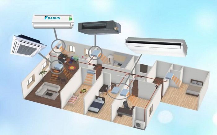 Multi Air Conditioning is a type of air conditioning where one outdoor unit can connect to multiple indoor units (around 3 – 5 indoor units). This air conditioning product line effectively solves the issue of limited aesthetics and space for installing separate conventional air conditioning units (1 unit consists of: outdoor unit + indoor unit), some even with large-sized outdoor units.