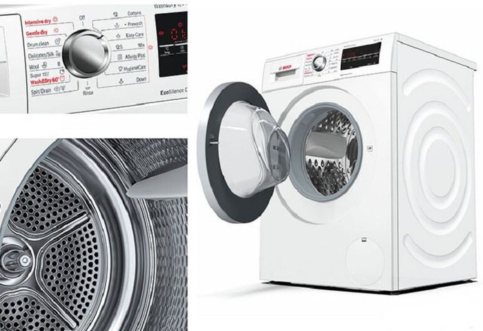 - What is the price of the Bosch WTW85460BY dryer? You may wonder about the cost of this premium 8kg heat pump dryer, which is also one of the highest-priced clothes dryers on the market today. The product has a price range of approximately 23 – 30 million VND, depending on the seller. Heat pump dryers with an 8kg drying capacity worth considering include: Electrolux EDH803BEWA, Fagor 3SFE-850BE, Electrolux 8 kg EDH804H5WB, Electrolux 8 kg EDH804H5WB. In summary, the Bosch WTW85460BY dryer will be a suitable choice for your family's daily laundry needs. If you want to choose a dryer with a lower price of around 15 – 19 million VND, you can consider Electrolux or LG models. Meanwhile, if you are not concerned about the price, the Bosch WTW85460BY, priced at 23 – 30 million VND, is well worth it for its outstanding durability, quiet operation, and gentle clothes drying capabilities, especially in preventing wrinkles on fabrics after drying, extremely convenient, and protective of clothes with high-quality materials.