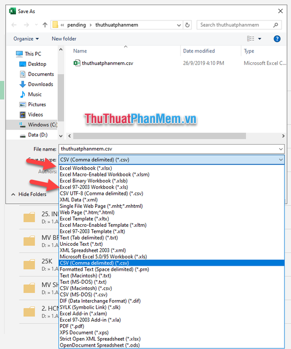 Step 5: The Save As window appears, in the Save as Type section, choose the file format you want to convert to: .xls or .xlsx.