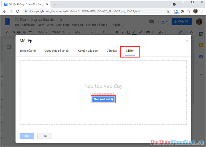 Step 3: Now, simply choose Upload and click on Choose File from Device to add documents from your computer to Google Docs.