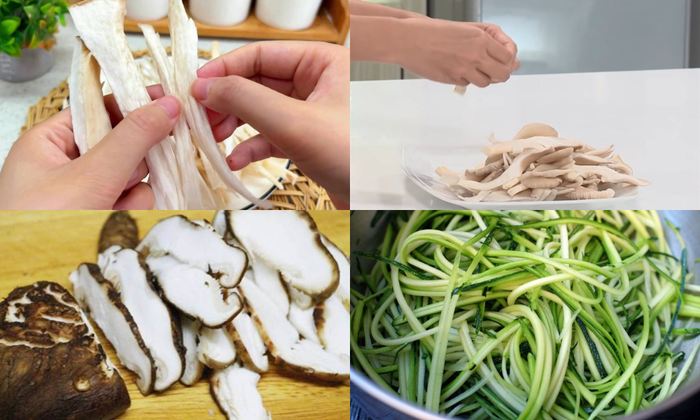 - Trim off the stems of shiitake mushrooms, soak them in diluted salt water for a few minutes, then rinse and slice them into bite-sized pieces.