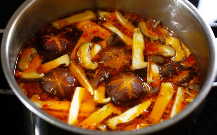 - For fresh shiitake mushrooms, remove the stems and soak them in diluted salt water. Rinse the mushrooms thoroughly with water, and for an eye-catching presentation, use a knife to trim the mushroom heads into star shapes.