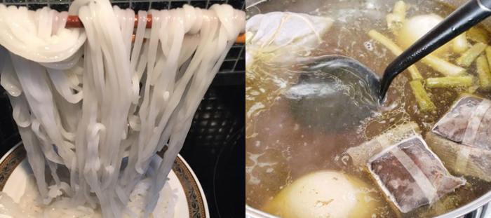Step 3: Soak the pho noodles; for the white pho strands, boil a pot of water and add the noodles to blanch. Blanch for a few minutes; when ready to eat, place the pho noodles into each bowl.