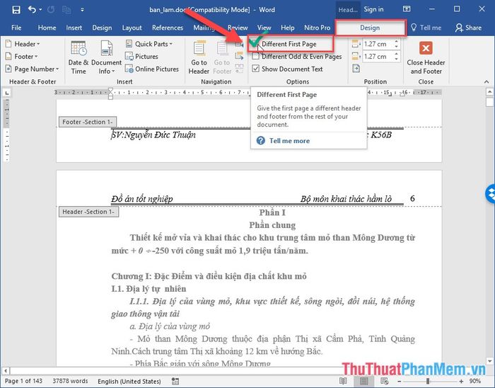 Furthermore, if you wish to make the page title and footer of the first page different from the rest, check the Different First page option: