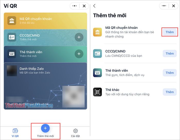 Step 2: In the QR Wallet, select Add New Card and choose Add QR Code transfer to quickly generate a transfer QR code.
